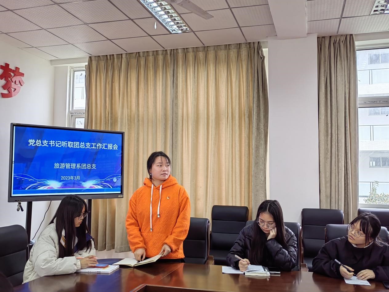 为进一步加强旅游管理系团总支自身建设,提高学生干部队伍整体素质,3月20日下午,旅游管理系在6教304会议室举办了党总支书记听取团总支工作汇报会。系党总支书记陈根元、团总支书记车洁、学生会全体同学参加了会议。会议由车洁主持。
