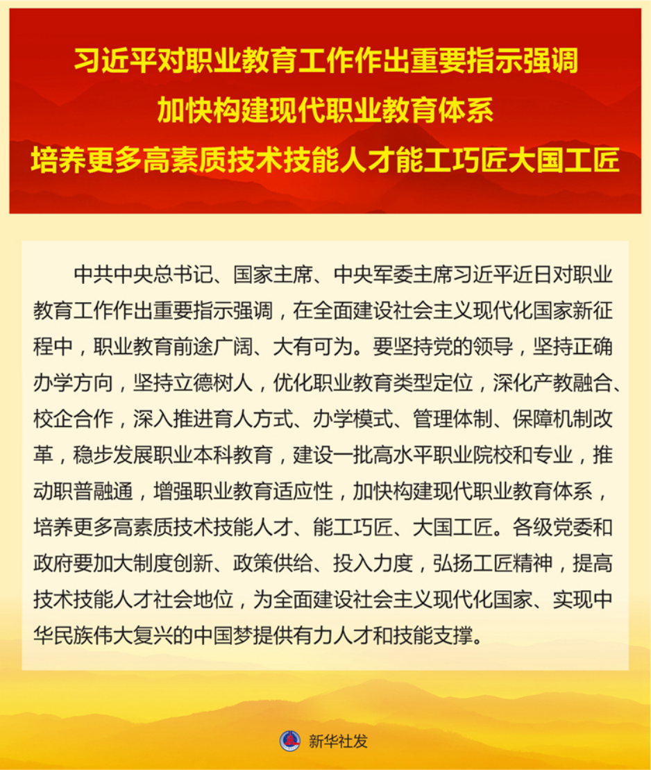 习近平对职业教育工作作出重要指示强调
