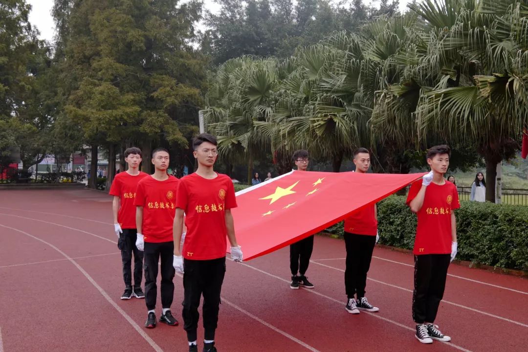 迎着晨曦,在雄壮的国歌声中,信息技术系2019级同学与老师们一起满怀激情地仰望五星红旗在校园冉冉升起,共同开启新的学期。