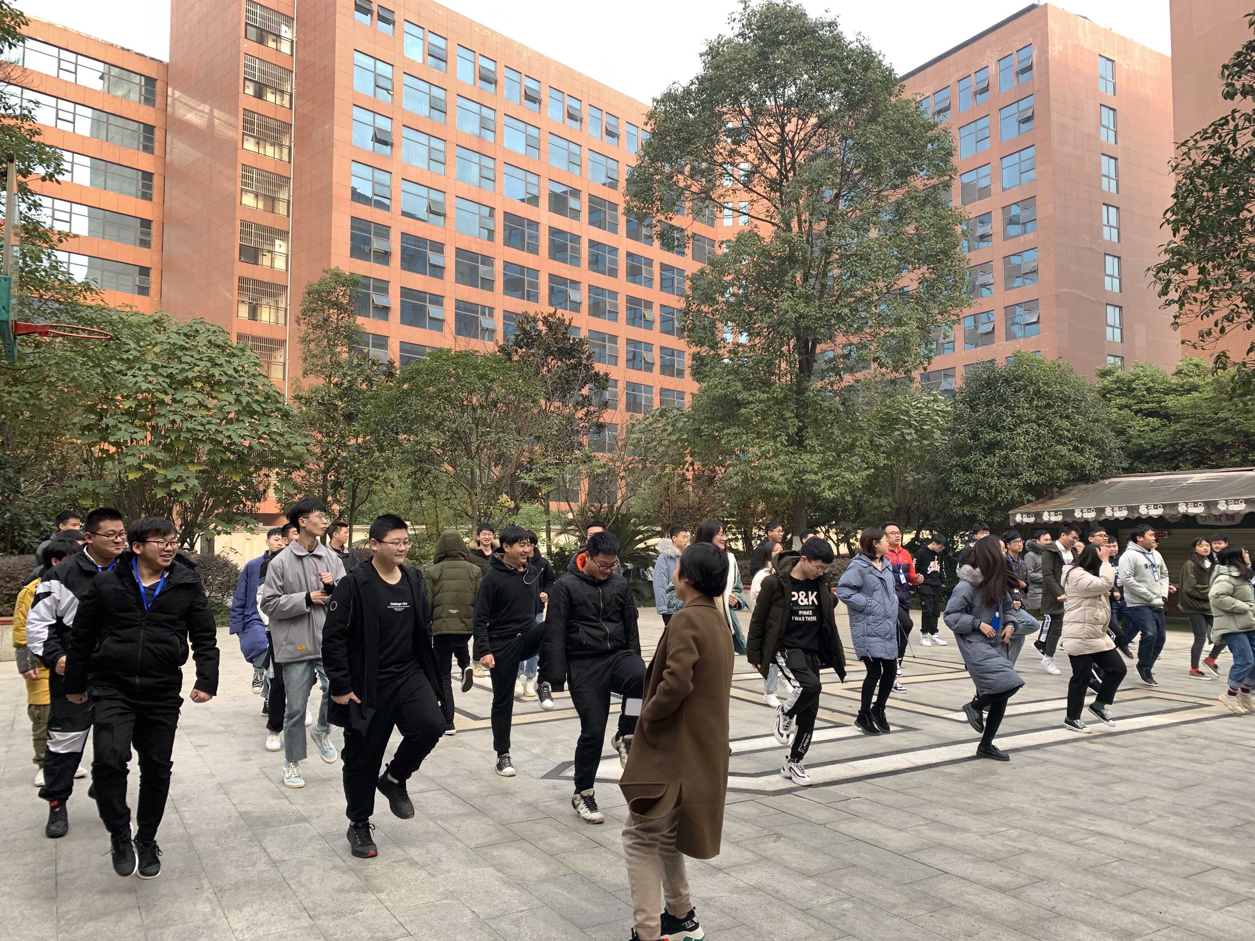 在疲惫的实训中期,为增强同学们的团队凝聚力,胡老师特在12月11号组织开展了户外拓展活动。通过一系列的游戏互动,不仅让学生在高强度的实训中得以放松,还促进学生之间的相互交流。