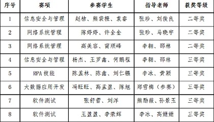 近日,由四川省教育厅主办,各兄弟院校承办的2023年“中银杯”四川省职业院校技能大赛在我省各地区相继开展。鸭脖信息技术系共组建了14支队伍30余名学生,参加了高职组信息安全与管理评估、网络系统管理、RPA技能、软件测试、大数据应用开发、云计算技术应用等六个赛项的比赛,共斩获二等奖3个,三等奖5个。