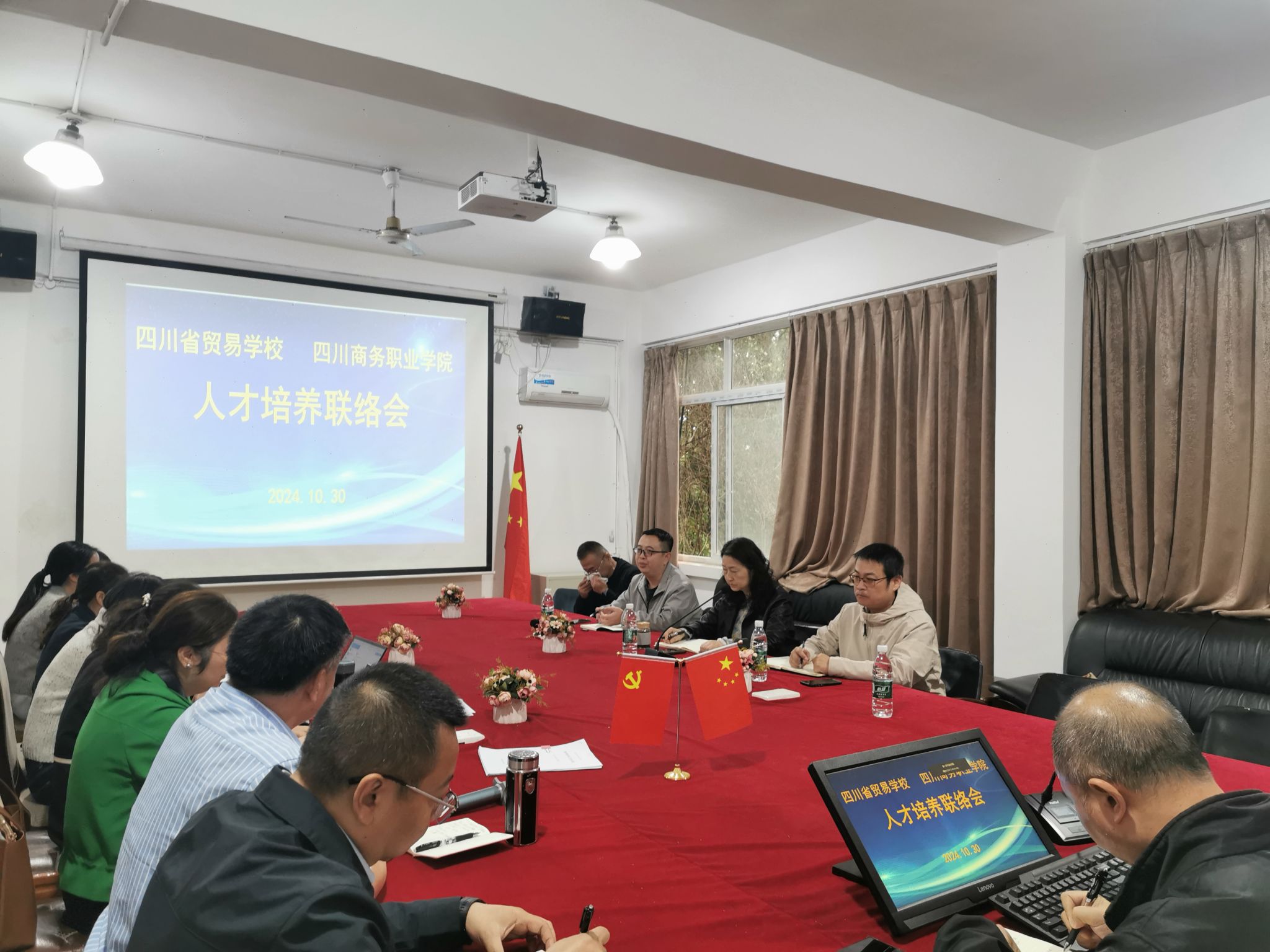 10月30日下午,四川省贸易学校副校长孟令峰等一行4人到访鸭脖,信息技术系和会计系负责人、相关专业负责人及学生管理人员热情接待。双方在文家校区1201会议室进行了座谈交流,重点就中高职衔接的人才培养方案、专业课程、教学方法、学生管理、学风建设、人文关怀、职业规划等相关方面交换了意见。